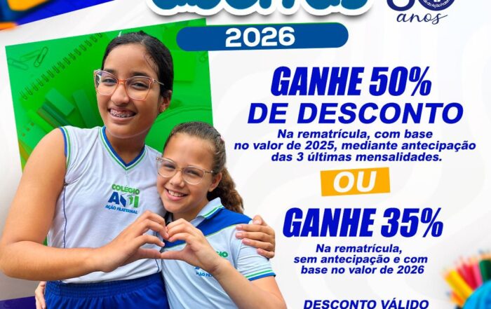 Com alegria no coração e fé no futuro, anunciamos que as matrículas para o ano letivo de 2026 já estão abertas! Na nossa escola, Jesus é o centro de tudo. Acreditamos que a verdadeira [...]