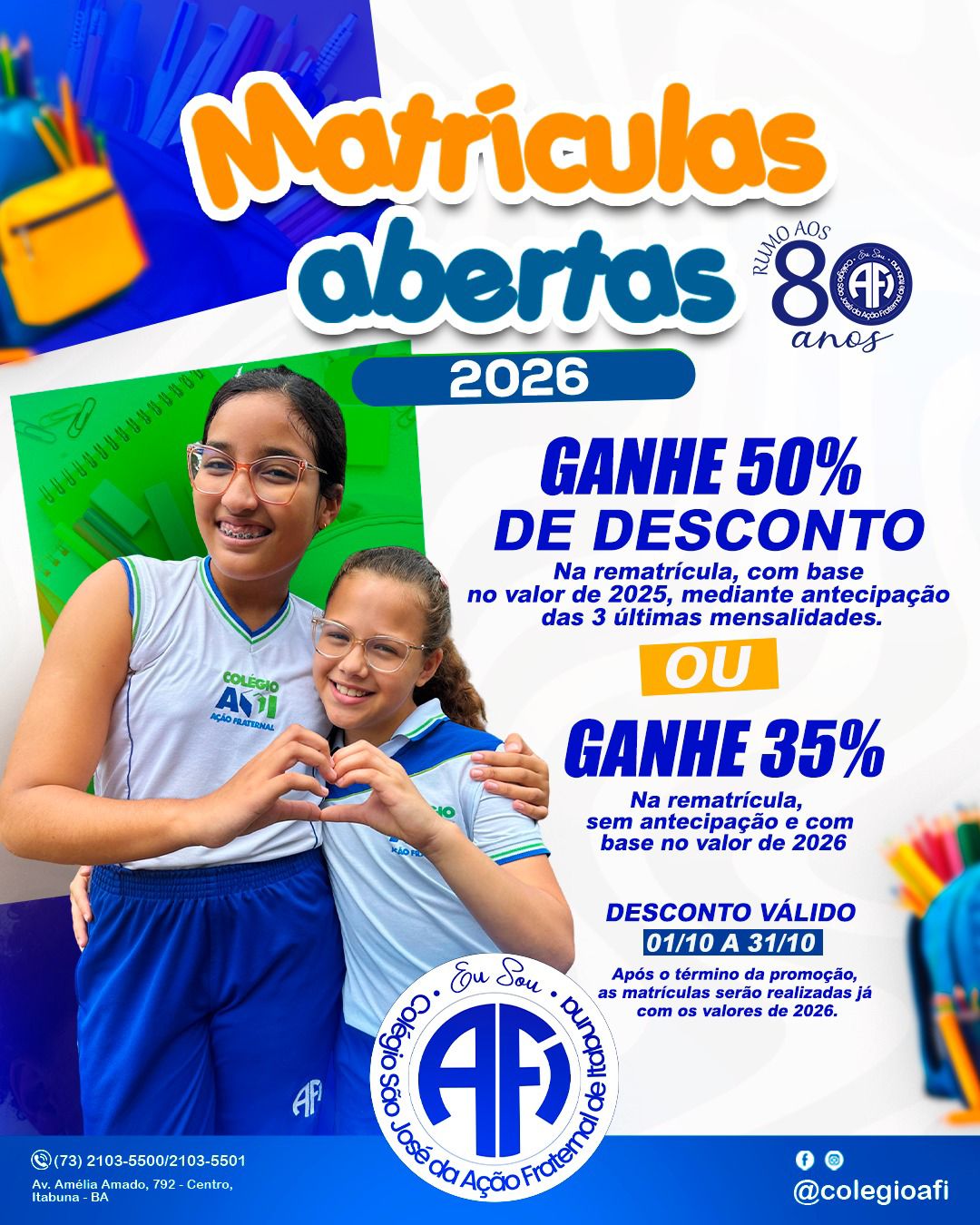 Com alegria no coração e fé no futuro, anunciamos que as matrículas para o ano letivo de 2026 já estão abertas!